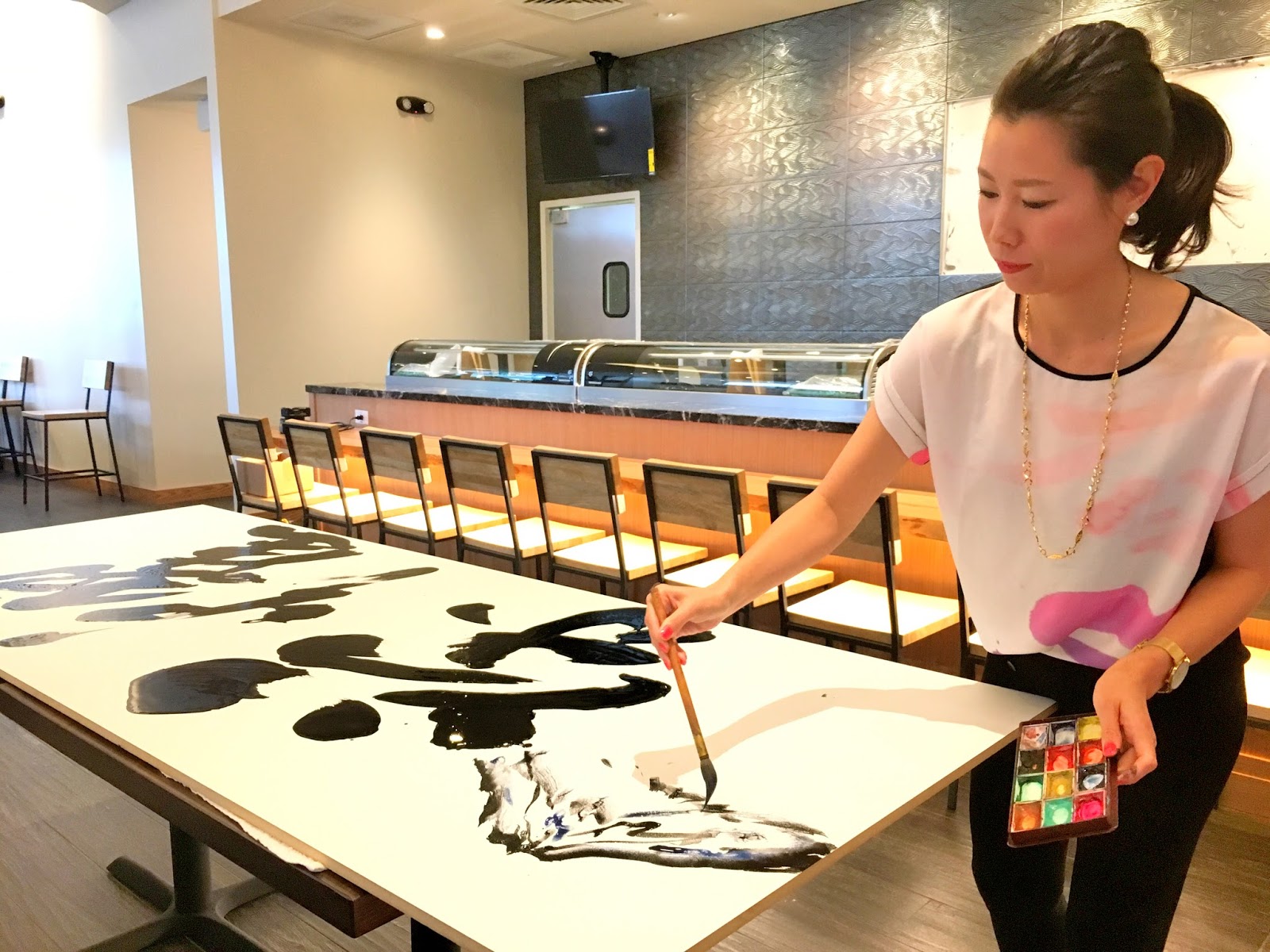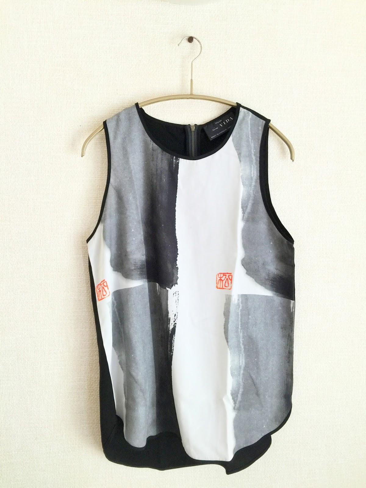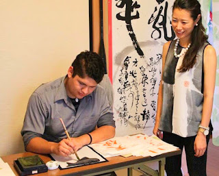 Texasで書道パフォーマンスした際に、黒いパンツにインして着てみました。